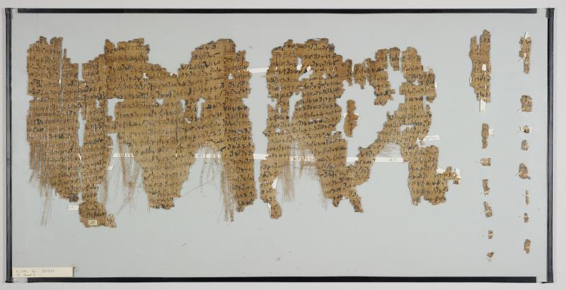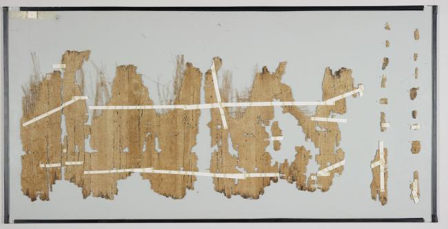1 pane of glass containing 1 papyrus fragments ; 11 1/2 x 25 1/2 inches
