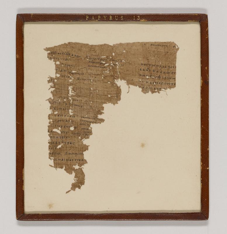 1 pane of glass containing 1 papyrus fragment ; 6 x 5.5 inches