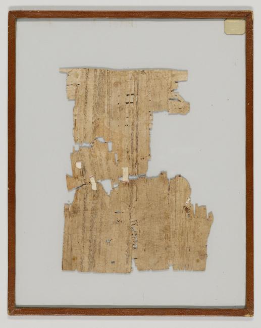 1 pane of glass containing 3 papyrus fragments ; 5 x 8 in.; 2.5 x 3 in.; 5.5 x 7 in.