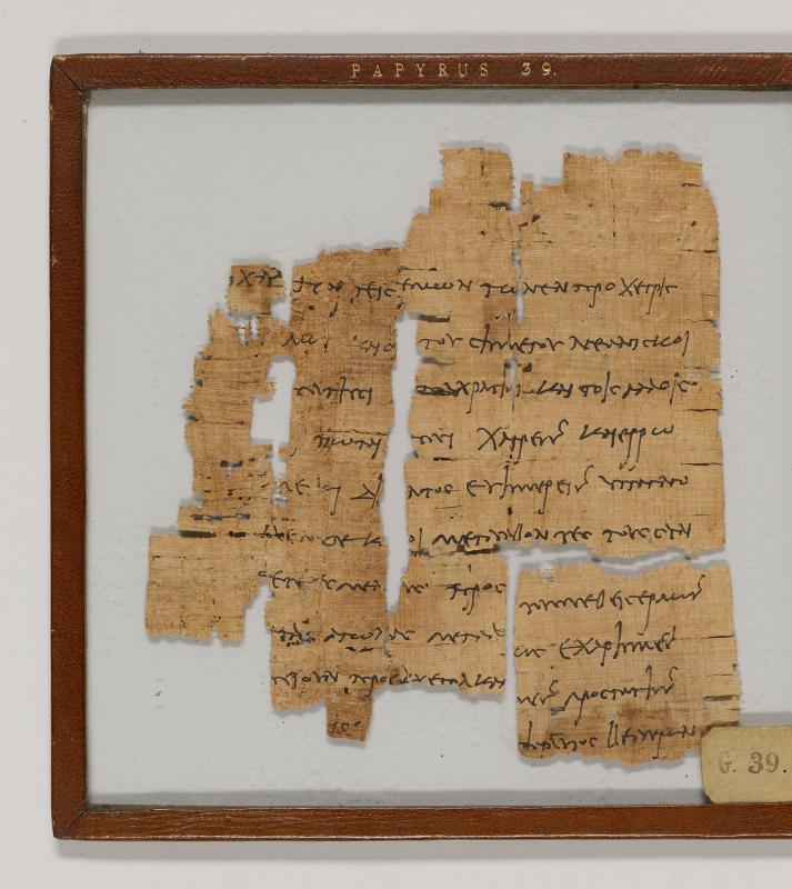 1 pane of glass containing 2 papyrus fragments ; 6.5 x 6.5 in.; 2 x 2.5 in.