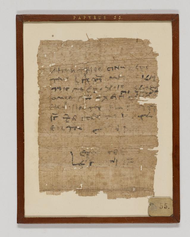 1 pane of glass containing 1 papyrus fragment ; 7 x 5.5 inches