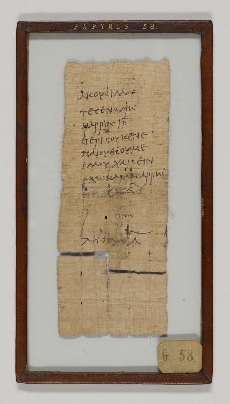 1 pane of glass containing 2 papyrus fragments ; 5.5 x 3 in.; 2 x 3 in.