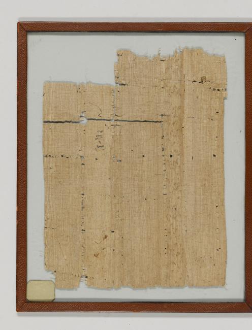 1 pane of glass containing 1 papyrus fragment ; 9 x 7 inches