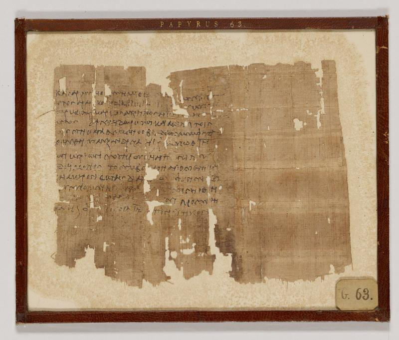 1 pane of glass containing papyrus fragment ; 6 x 8 inches