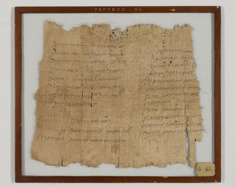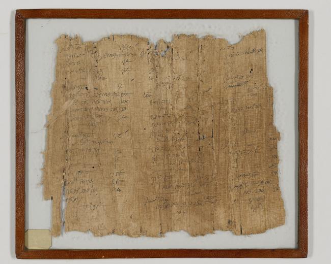 1 pane of glass containing 1 papyrus fragment ; 8.5 x 10 inches
