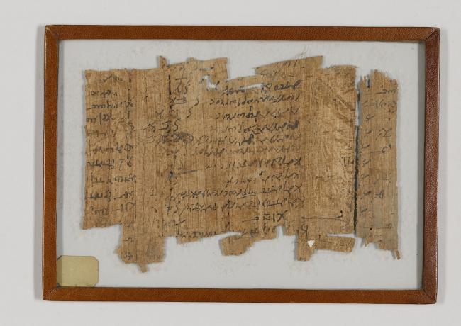1 pane of glass containing 2 papyrus fragments ; 4.5 x 1 in.; 5.5 x 7 in.