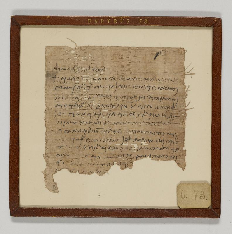 1 pane of glass containing 1 papyrus fragment ; 4.5 x 4.5 inches