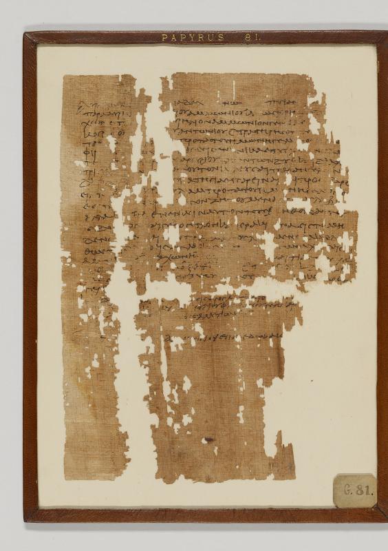 1 pane of glass containing 2 papyrus fragments; 10 x 2.5 in.; 10.5 x 6 in.