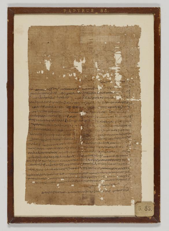 1 pane of glass containing 1 papyrus fragment ; 10 x 6.5 inches