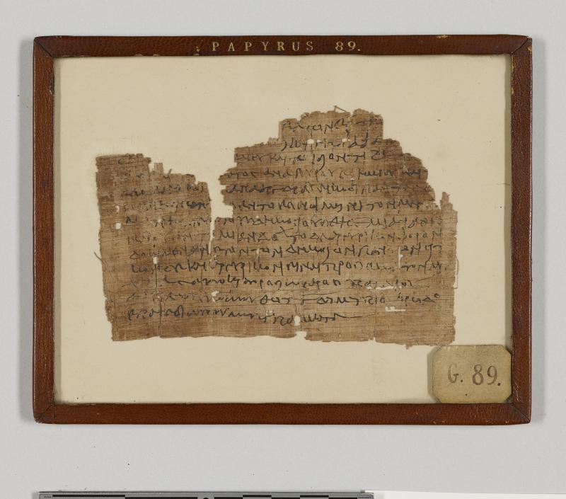 1 pane of glass containing 1 papyrus fragment ; 3.5 x 5 inches