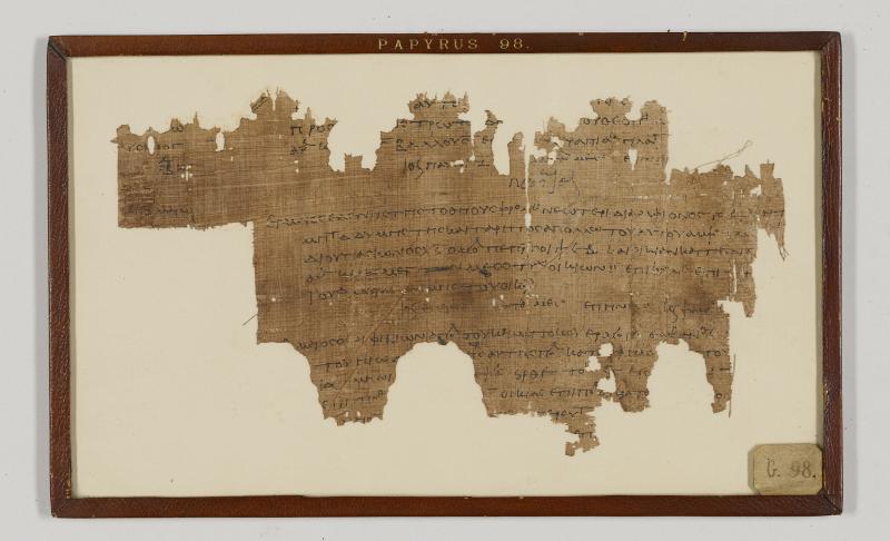 1 pane of glass containing 1 papyrus fragment ; 6 x 10.5 inches