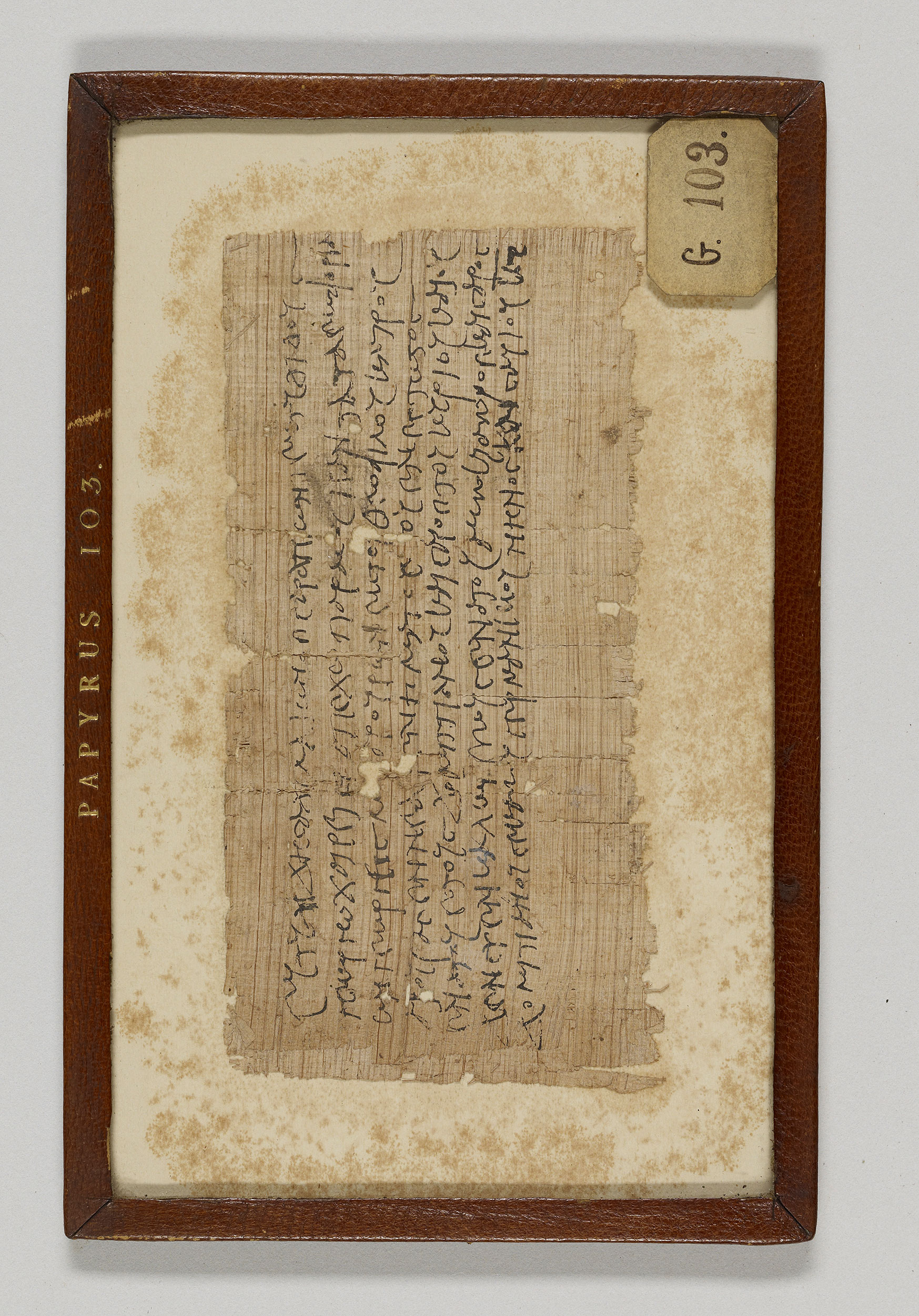 1 pane of glass containing 1 papyrus fragment ; 2.5 x 5.5 inches