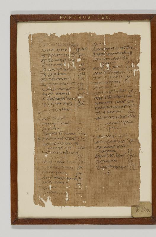 1 pane of glass containing 1 papyrus fragment ; 9 x 6 inches