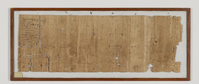1 pane of glass containing 1 papyrus fragment ; 7 x 19.5 inches