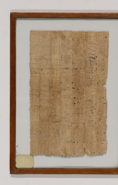 1 pane of glass containing 1 papyrus fragment ; 7.5 x 5 inches