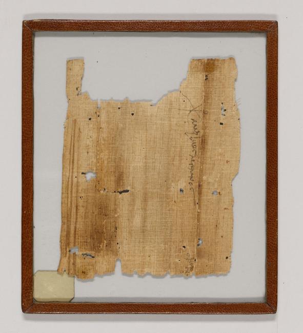 1 pane of glass containing 1 papyrus fragment ; 5.5 x 4.5 inches