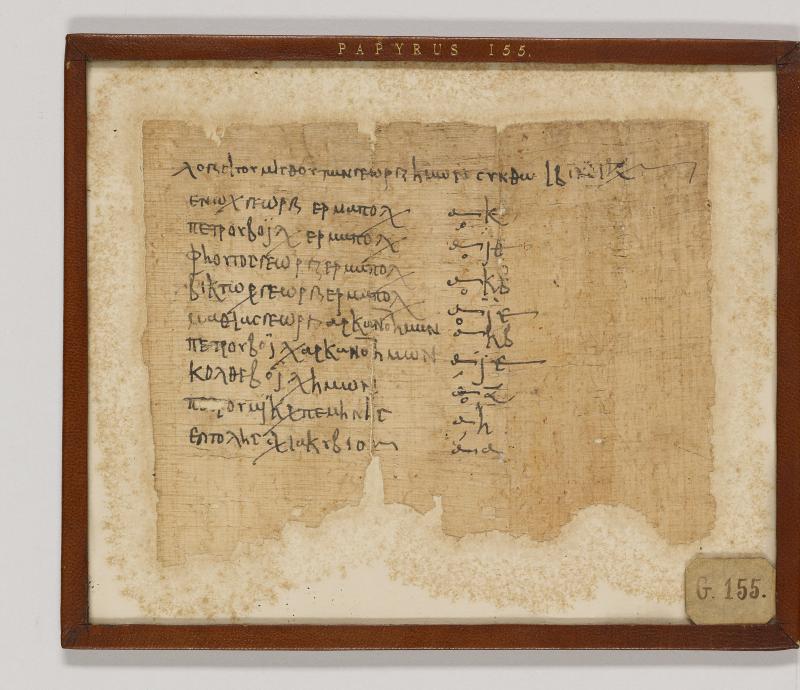 1 pane of glass containing 1 papyrus fragment ; 5.5 x 7 inches