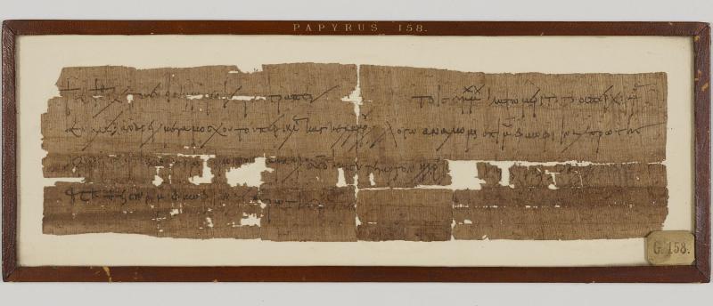 1 pane of glass containing 1 papyrus fragment ; 4 x 14.4 inches