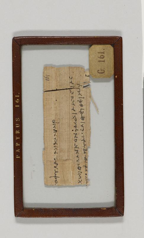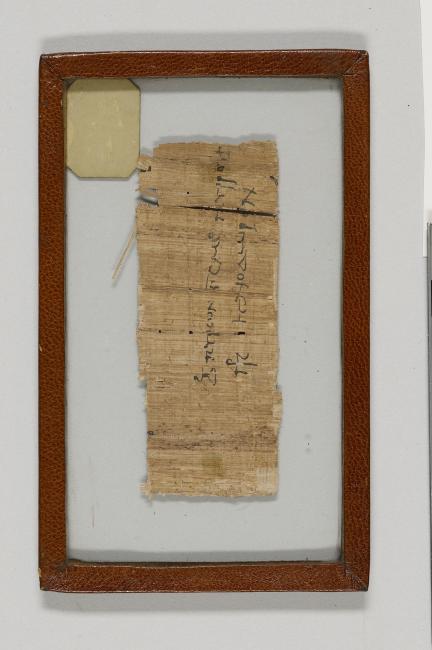 1 pane of glass containing 1 papyrus fragment ; 1.5 x 4 inches
