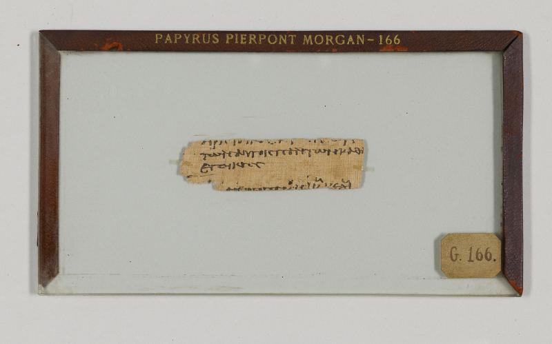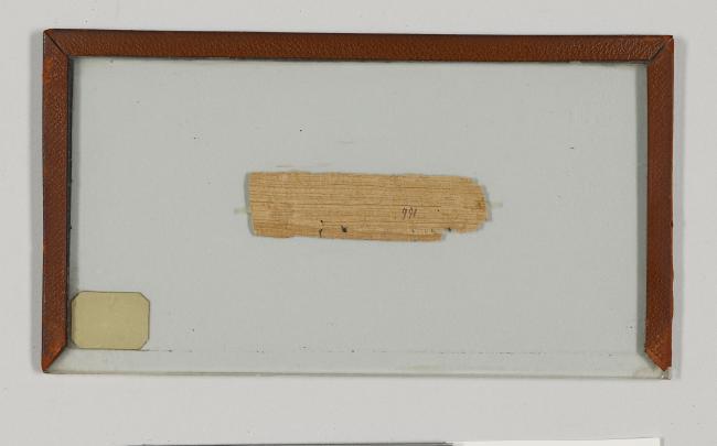 1 pane of glass containing 1 papyrus fragment ; 1 x 3.5 inches