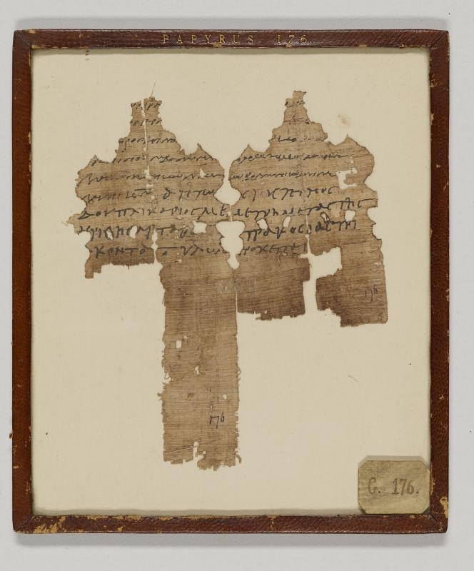 1 pane of glass containing 1 papyrus fragment ; 6 x 5 inches
