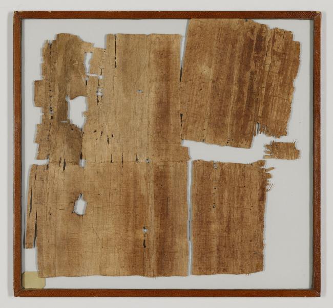 1 pane of glass containing 3 papyrus fragments ; 12.5 x 12.5 in.; 5.5 x 3.5 in.; 1 x 1.5 in.