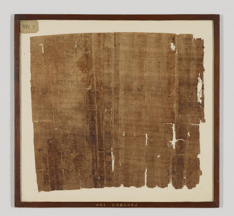 1 pane of glass containing 1 papyrus fragment ; 10 x 10.5 inches
