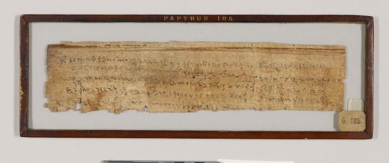 1 pane of glass containing 1 papyrus fragment ; 3 x 12 inches