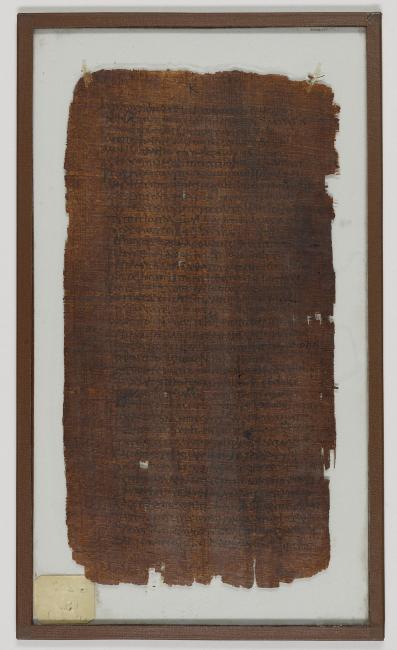 1 pane of glass containing 1 papyrus fragment ; 10.5 x 5.5 inches