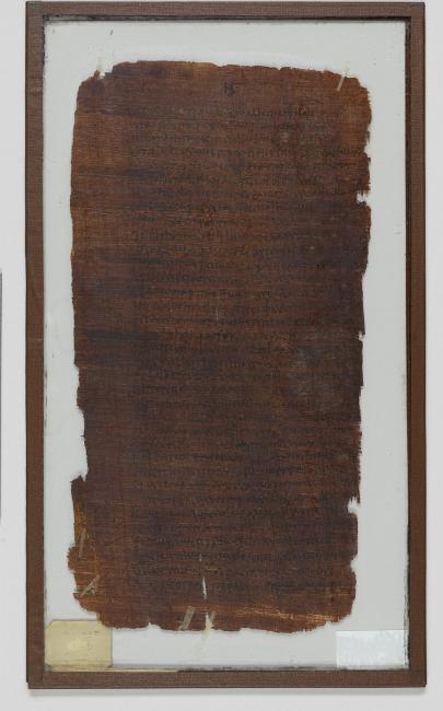 1 pane of glass containing 1 papyrus fragment ; 10.5 x 5.5 inches