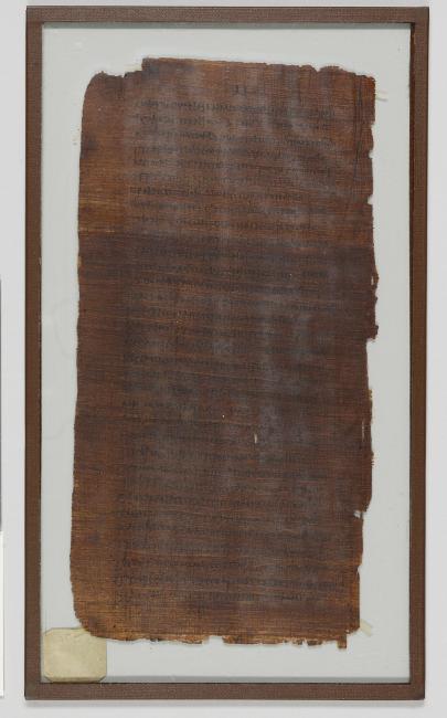 1 pane of glass containing 1 papyrus fragment ; 10.5 x 5.5 inches