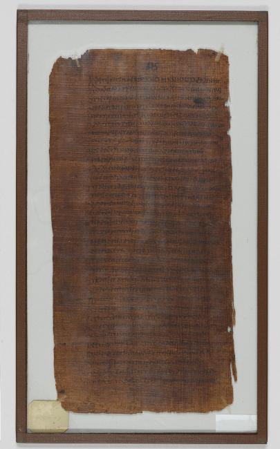 1 pane of glass containing 1 papyrus fragment ; 10.5 x 5.5 inches