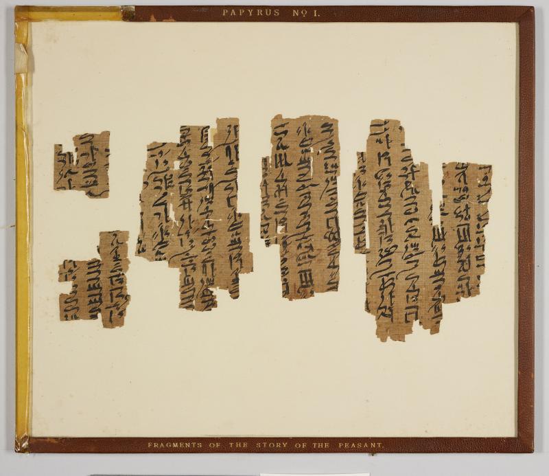 1 pane of glass containing 5 fragments : papyrus ; various dimensions; smallest, 1 3/4 x 1 1/2 in.; largest, 6 x 3 1/2 in.