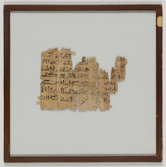 1 pane of glass containing 1 papyrus fragment ; 5 1/2 x 4 3/4 inches