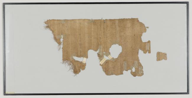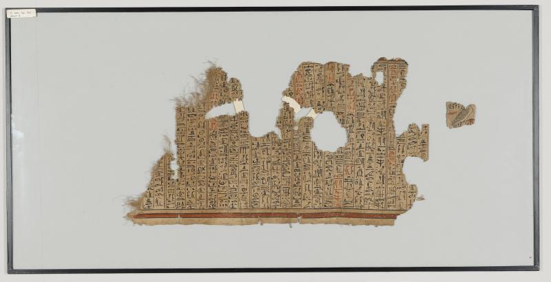 1 pane of glass containing 2 papyrus fragments : ill. ; 18 x 12 inches