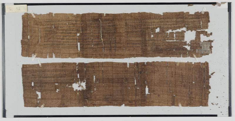 1 pane of glass containing 2 papyrus fragments ; 6 1/2 x 17 in.; 6 1/2 x 27 in.
