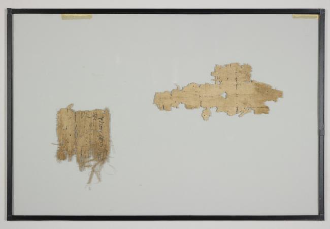 1 pane of glass containing 2 papyrus fragments ; 7 x 3 in.; 3 x 3 in.