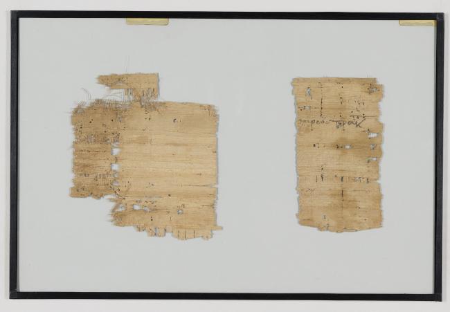 1 pane of glass containing 2 papyrus fragments ; 7 x 3 in.; 7 x 6 in.