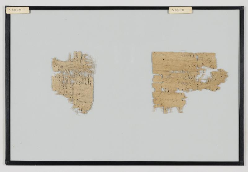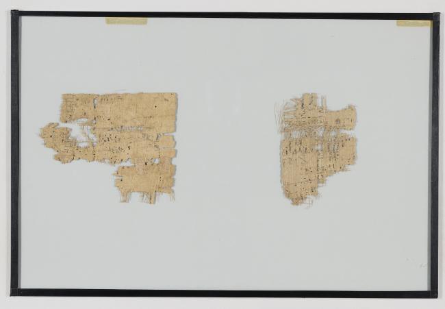 1 pane of glass containing 2 papyrus fragments ; 5 x 3 in.; 5 x 6 in.