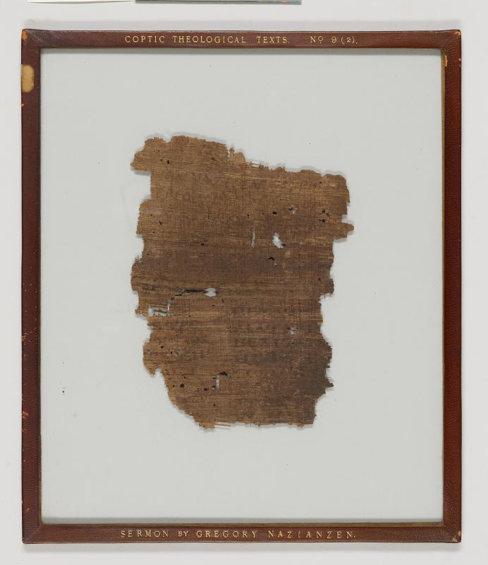1 pane of glass containing 1 papyrus fragment ; 208 x 158 mm