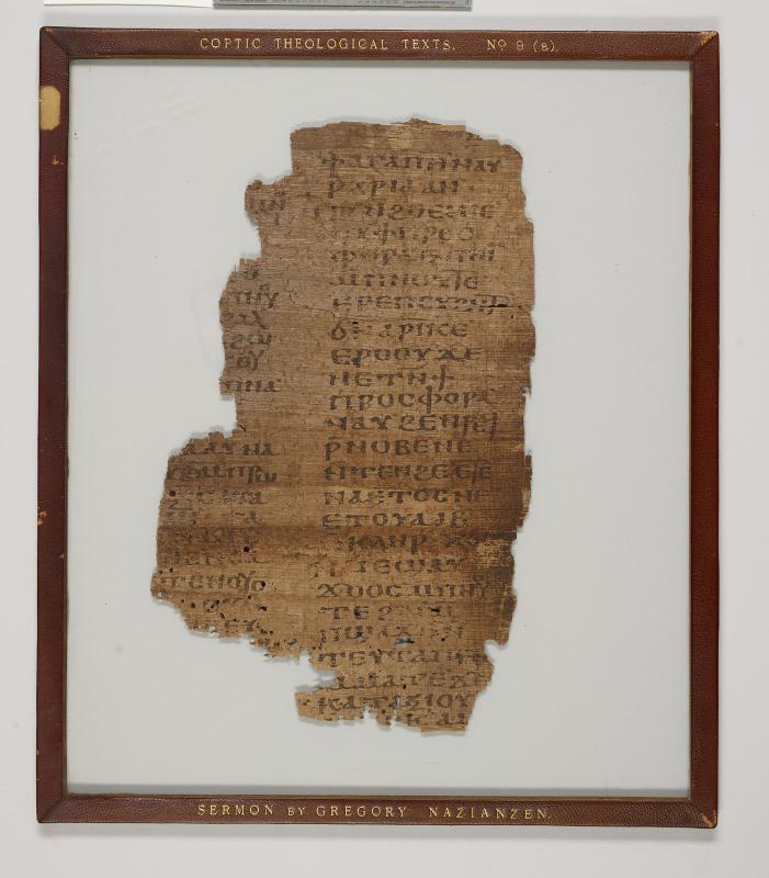 Manuscript fragment from a Homily on Romans 4:15 attributed to Gregory of Nazianzus; written in Egypt.