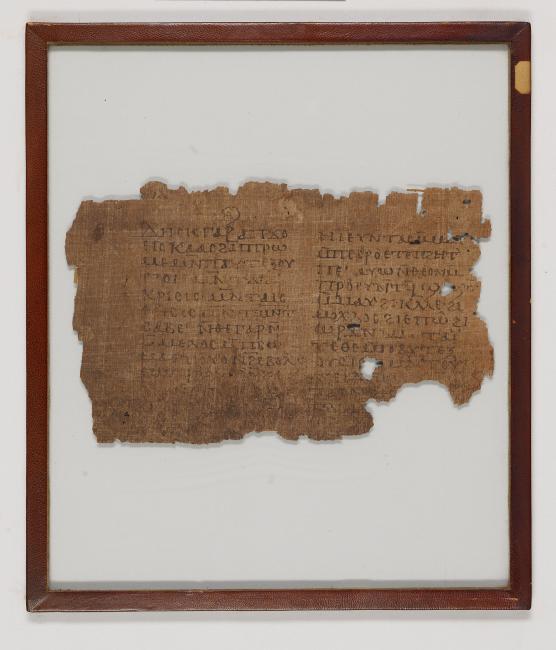 1 pane of glass containing 1 papyrus fragment ; 161 x 260 mm