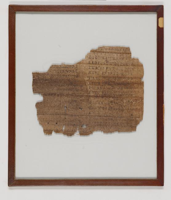 1 pane of glass containing 1 papyrus fragment ; 179 x 222 mm