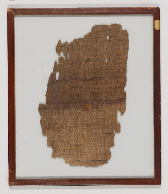 1 pane of glass containing 1 papyrus fragment ; 290 x 197 mm