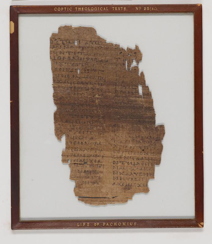 Manuscript fragments from a papyrus codex life of St. Pachomius; written in Egypt.