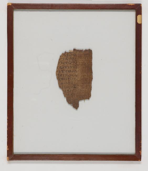 1 pane of glass containing 1 papyrus fragment ; 140 x 85 mm