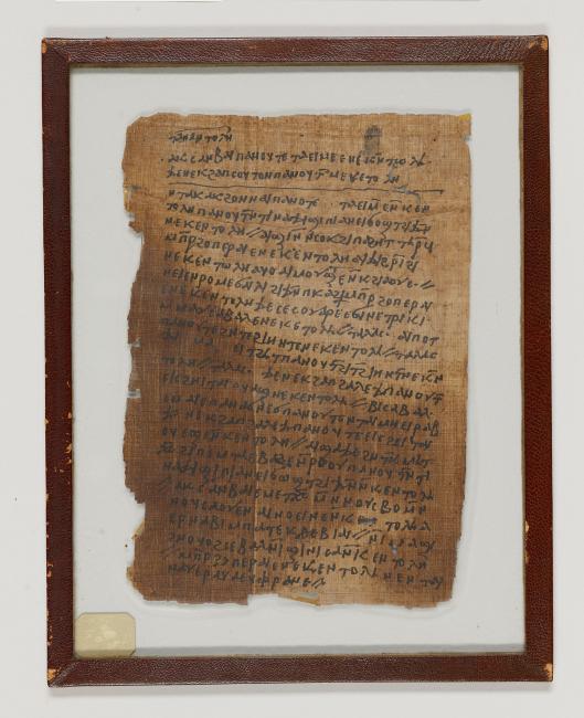 1 pane of glass containing 1 papyrus fragment ; 9 x 6 1/2 inches