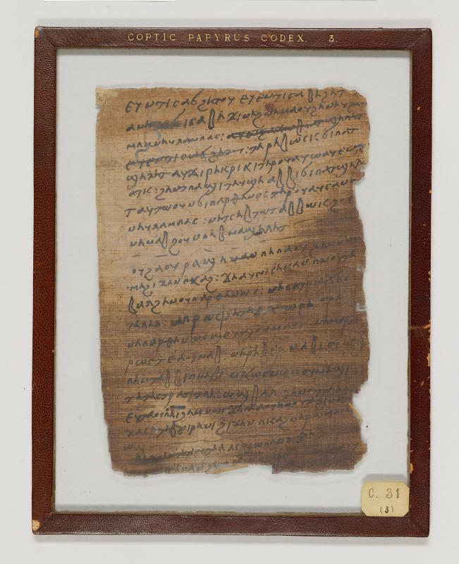 Part of a lot purchased in 1916 by Francis Willey Kelsey (1858-1927) on behalf of Pierpont Morgan, through the agency of Dr. David L. Askren, an American missionary and physician residing in the Fayyūm; brought to Henri Hyvernate in Rome by Kelsey in the beginning of 1920.