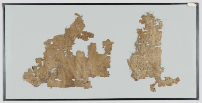 1 pane of glass containing 2 papyrus fragments : col. ill. ; 13 1/2 x 9 in.; 13 x 6 in.