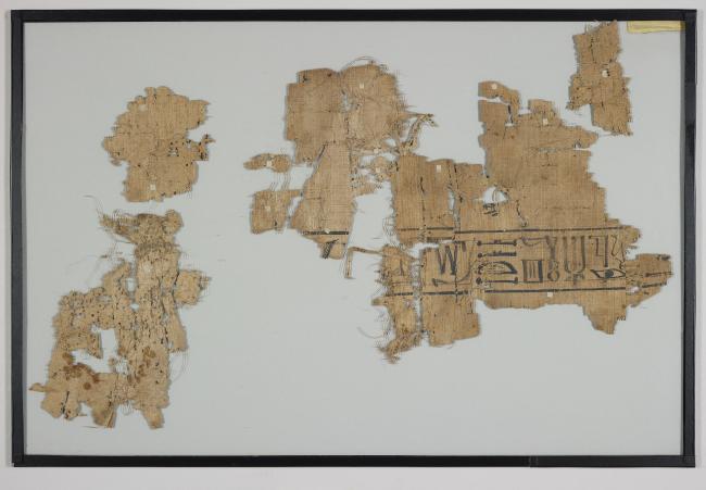 1 pane of glass containing 3 papyrus fragments ; pane: 12 x 18 inches